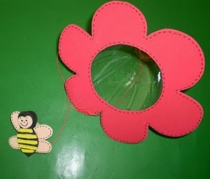 Materiais: EVA, cola quente, enfeites (olhinhos, fita, botões decorados, flores de EVA), caneta de retroprojetor, tesoura e tesoura de picotar.